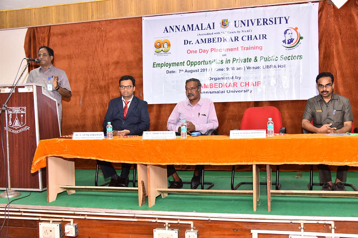 Dr.Ambedkar Chair, Annamalai University organized Placement Training on ‘Employment Opportunities in Private & Public Sector’ on 7th August 2019 in Annamalai University