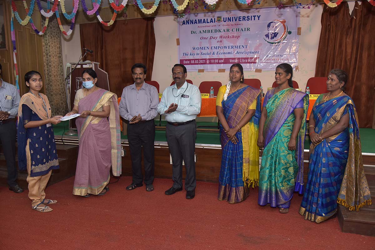 Dr.Ambedkar Chair, Annamalai University organized one day workshop on “Women Empowerment –The key to Social and Economic Development” on the occasion of International Women’s day 2021 on 8 th March 2021 (Monday) in Annamalai University